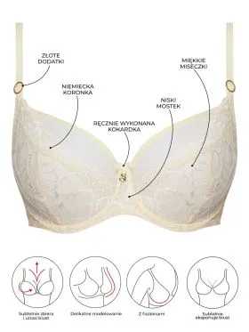 BIUSTONOSZ SAMANTA AMELIA A123 to doskonały wybór dla kobiet poszukujących połączenia elegancji i komfortu. Ten miękki biustonosz w kolorze biszkoptowym zapewnia subtelną stylizację, która doskonale komponuje się z każdą garderobą. Wykonany z wysokiej jakości materiałów, gwarantuje trwałość i komfort noszenia przez cały dzień. Kluczowym elementem konstrukcji są regulowane ramiączka, które pozwalają na idealne dopasowanie, zapewniając optymalne podtrzymanie biustu. Miseczki miękkie, delikatnie modelujące, są doskonałe dla pań ceniących naturalny kształt i lekkość. Biustonosz idealnie sprawdzi się zarówno na co dzień, jak i na specjalne okazje, podkreślając kobiecą sylwetkę. Jego uniwersalny design pasuje do różnych stylizacji, od casualowych po eleganckie. Dzięki zastosowaniu beżowej tonacji, biustonosz pozostaje dyskretny nawet pod cienkimi tkaninami. Wybór tego modelu to gwarancja satysfakcji i wygody, na którą zasługuje każda kobieta.