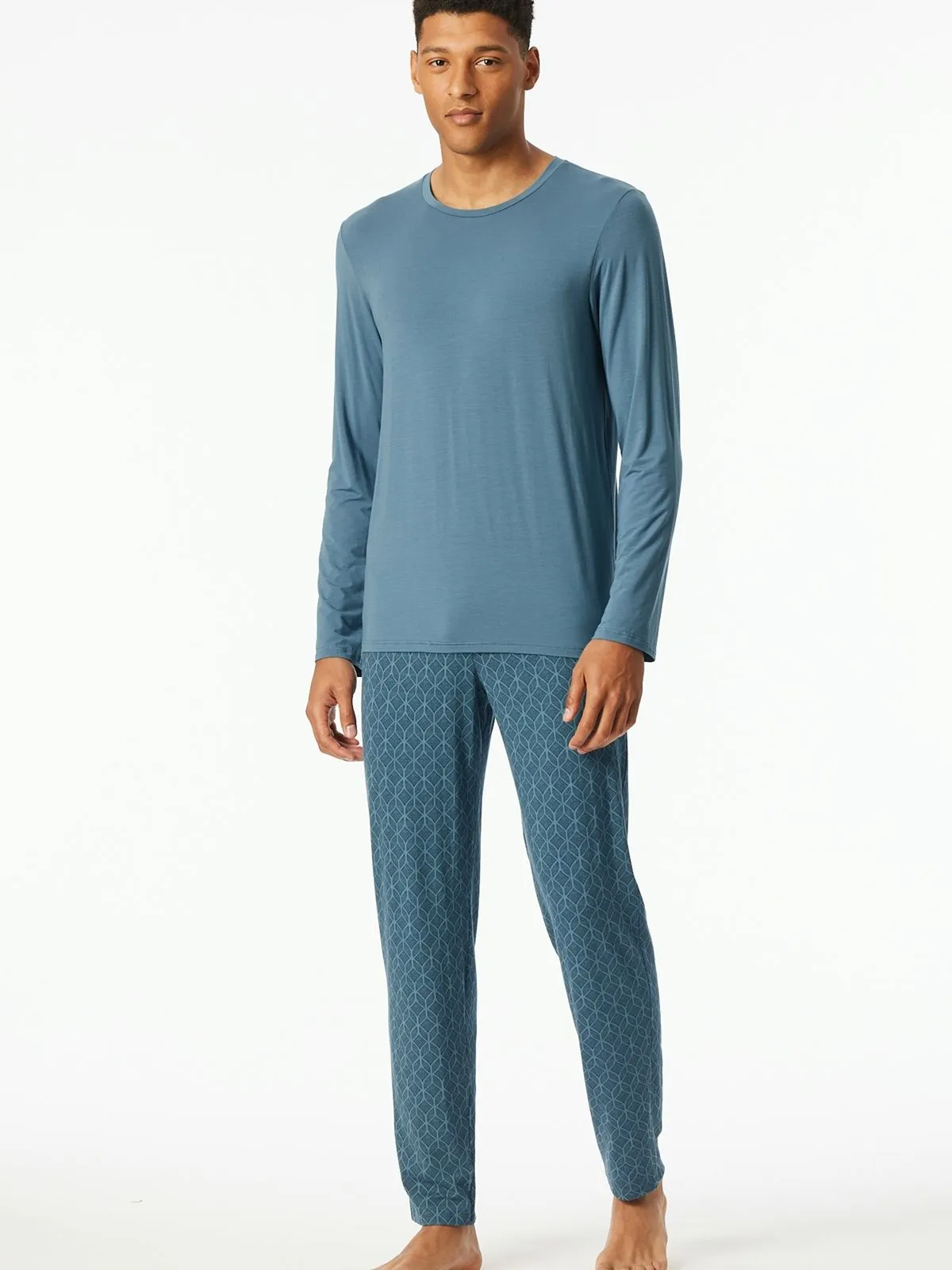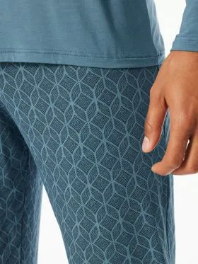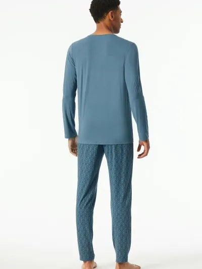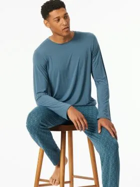 Schiesser 182739 to piżama z okrągłym dekoltem, która zachwyca klasycznym fasonem. Długie nogawki gwarantują ciepło w chłodniejsze noce, jednocześnie zapewniając modny wygląd. Zestaw w kolorze niebiesko-granatowym to idealna opcja dla tych, którzy szukają nowoczesnego, a zarazem eleganckiego rozwiązania na nocny wypoczynek.